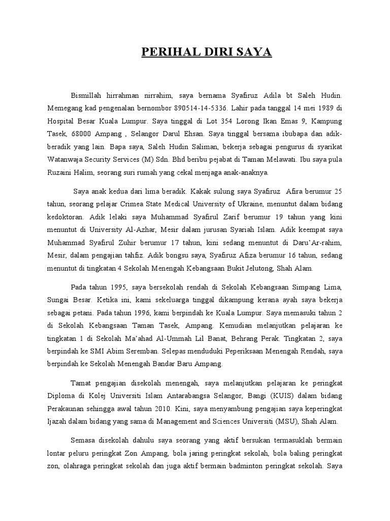 Contoh Autobiografi Diri Sendiri Panjang dan Singkat - Academia. Access Free Contoh Karangan Biodata Diri Saya Tingkatan 1 7 Hontohkarangan biodata diri saya tingkatan 1 7 hontoh that can be your partner. Teks eksposisi adalah sebuah karangan atau paragraf yang mengandung informasi atau pengetahuan yang mencoba digambarkan dalam bentuk.